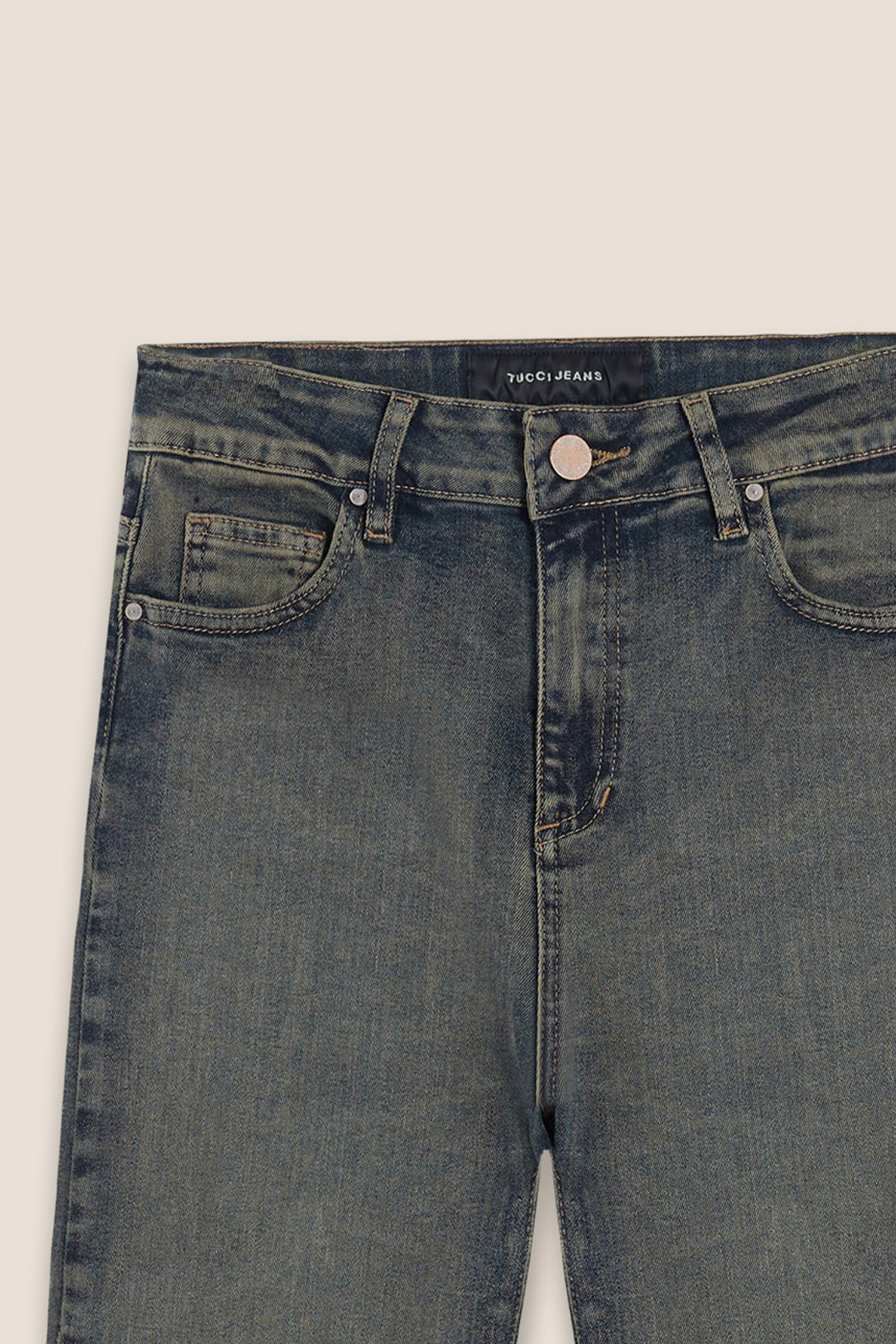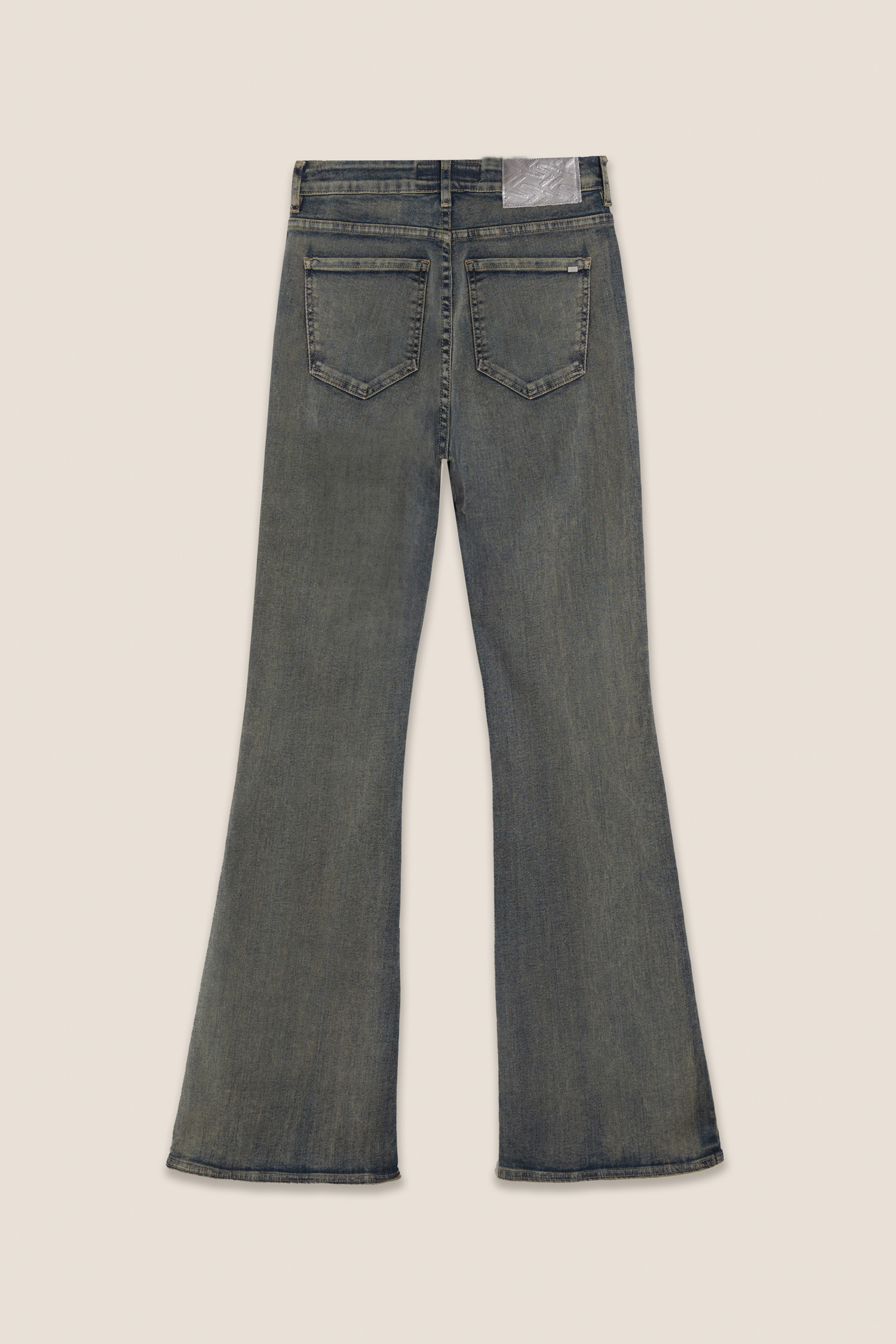 Pantalón de denim tiro alto fit flare. Es un clasico reversionado con un matizado especial, super en tendencia, color chocolate. Tejido super strech que aporta comfort. Metales jeaneros exclusivos desgastado efecto vintage.