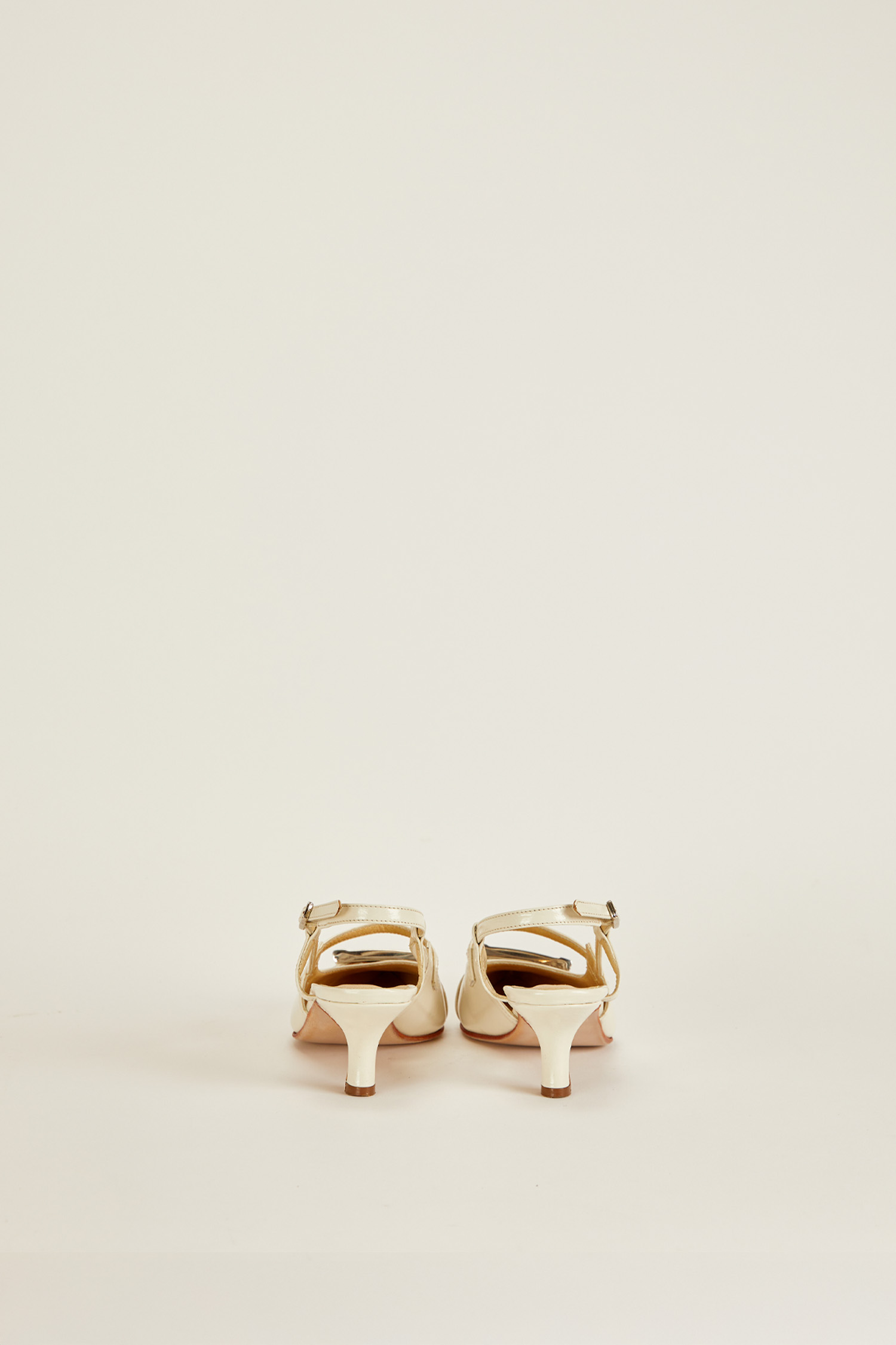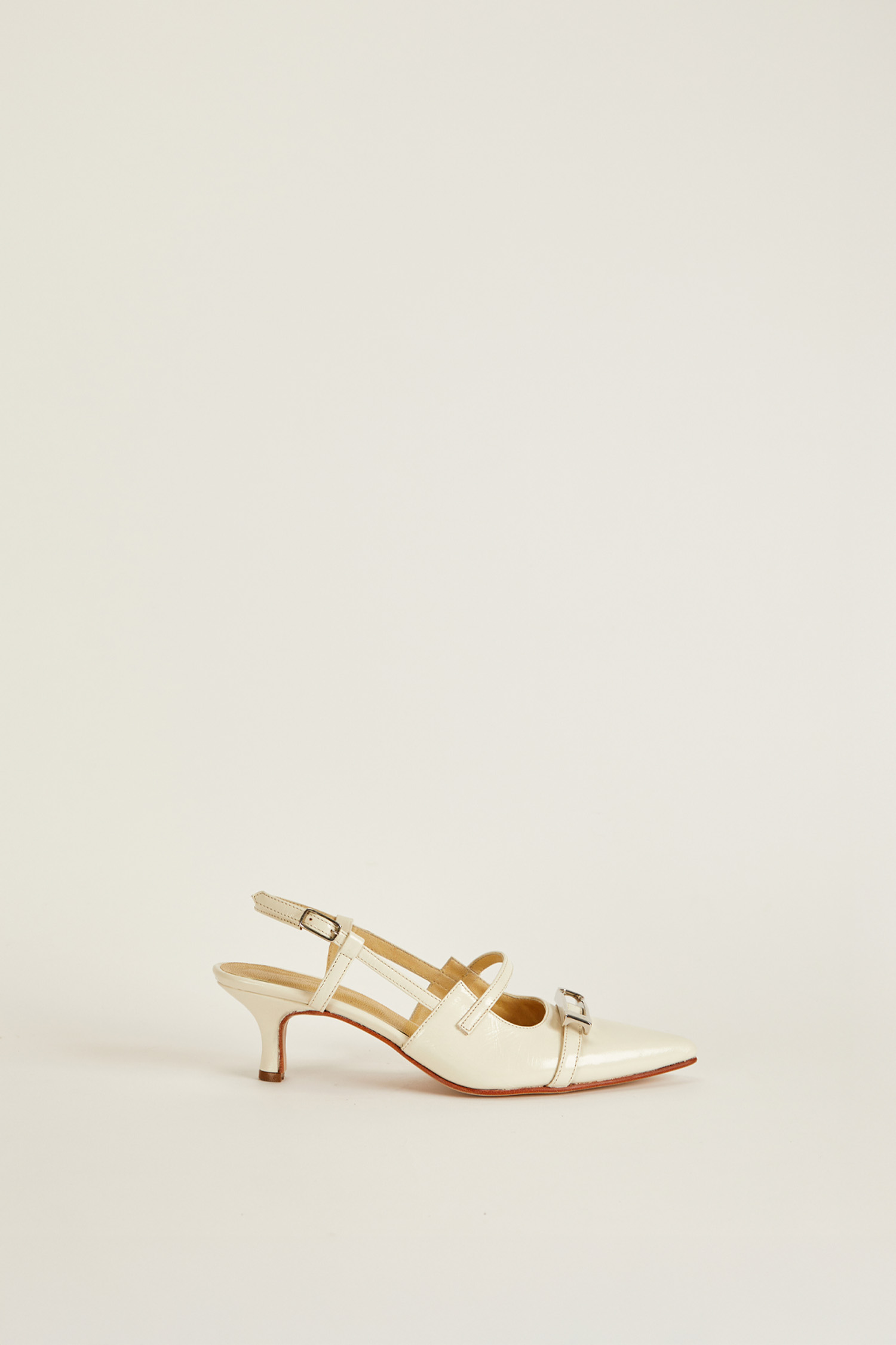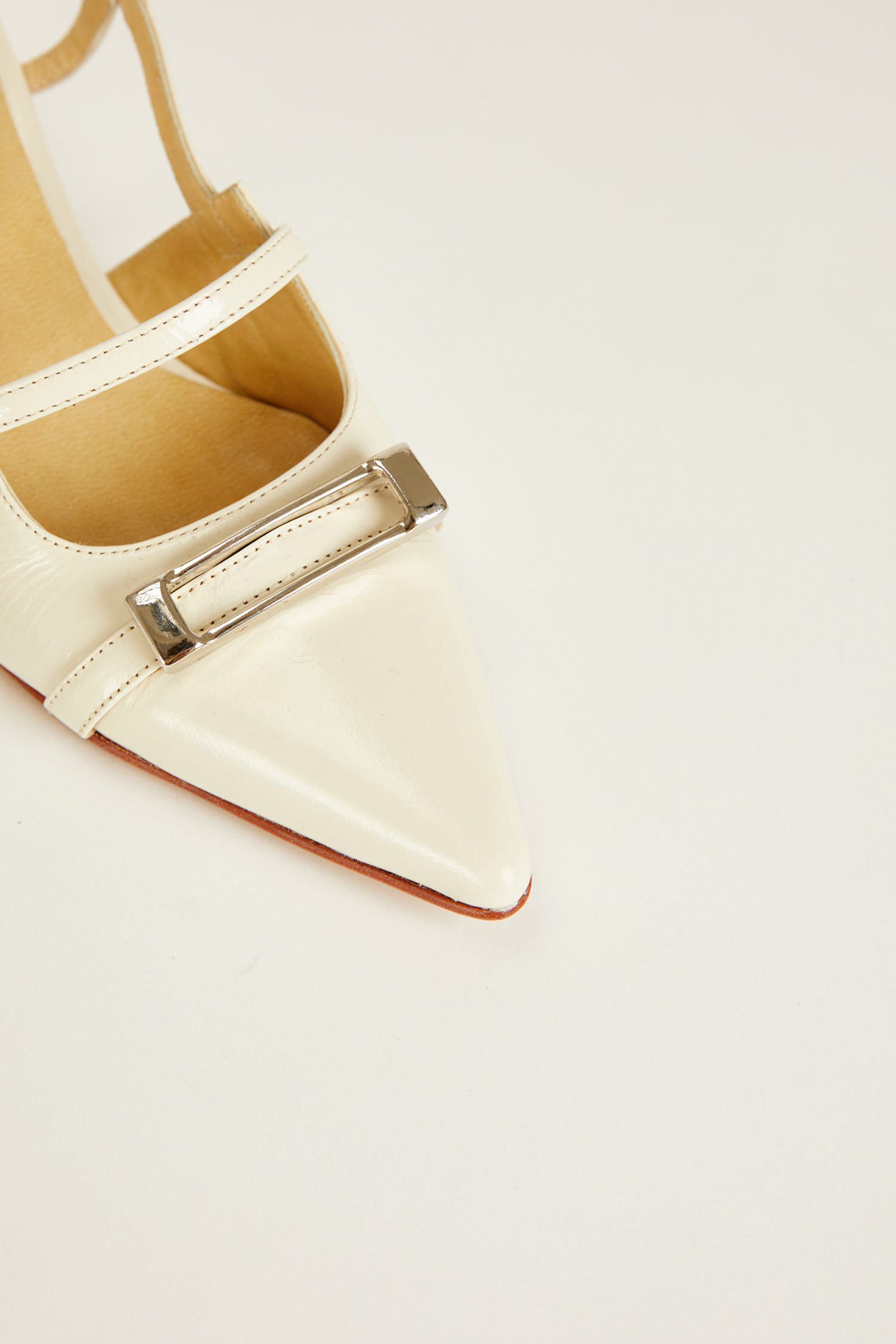 Zapato confeccionado en 100% cuero charol. Terminado en punta, tiene un diseño distintivo ya que lleva una hebilla rectangular metálica, y un taco bajo que combina la sofisticación de un stiletto con la comodidad que necesitas para estar siempre elegante. Alto de taco de 5cm.