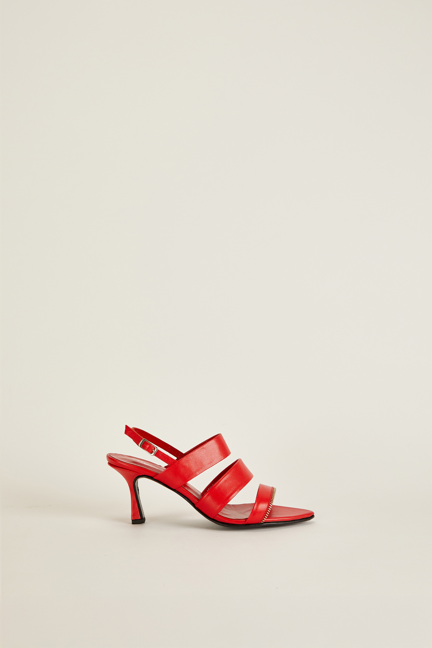 Sandalia confeccionada en 100% cuero vacuno, terminada en punta y con detalles terminados con cierre, dándote un look con mucha personalidad. Alto de taco de 7cm.