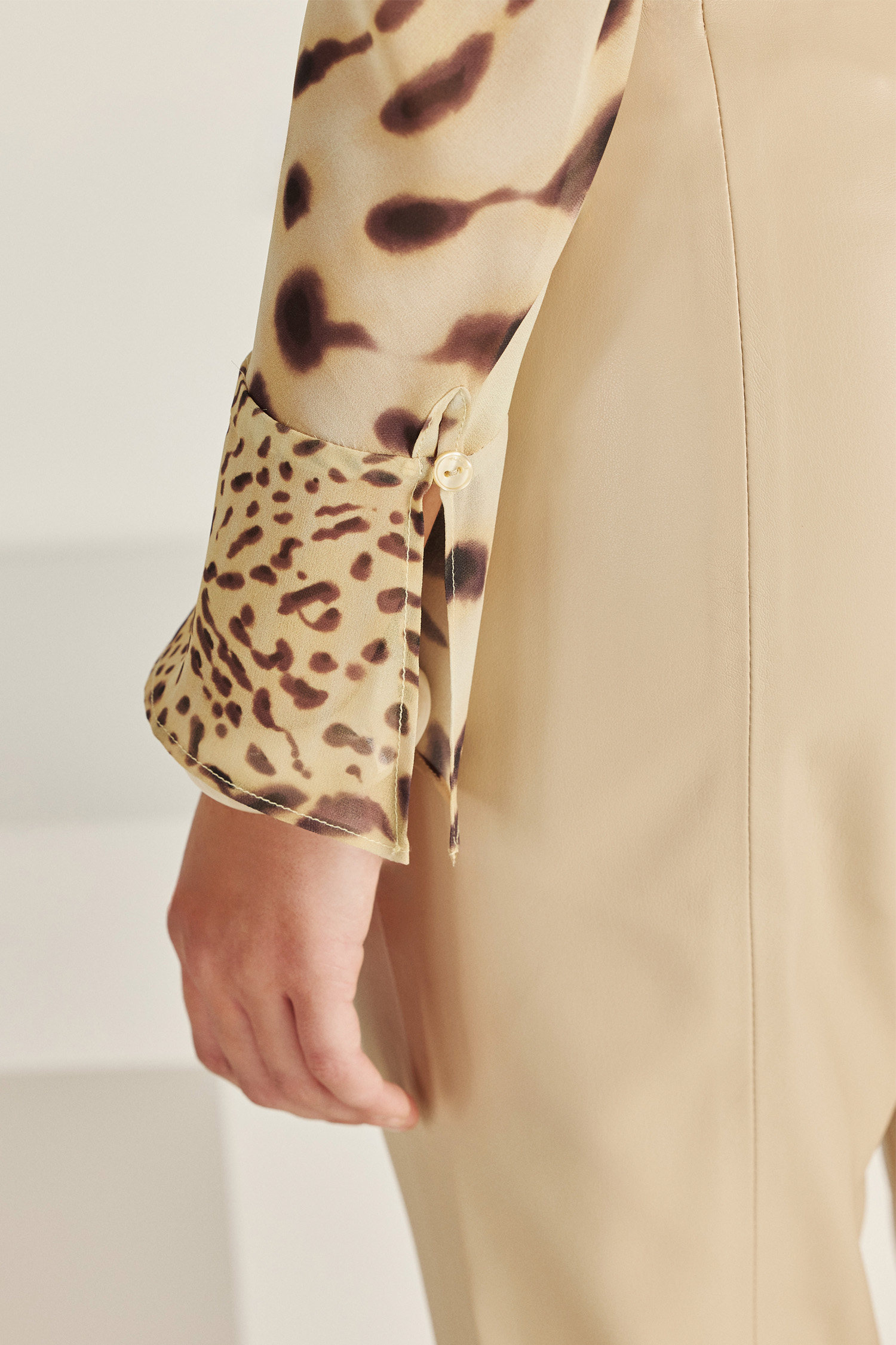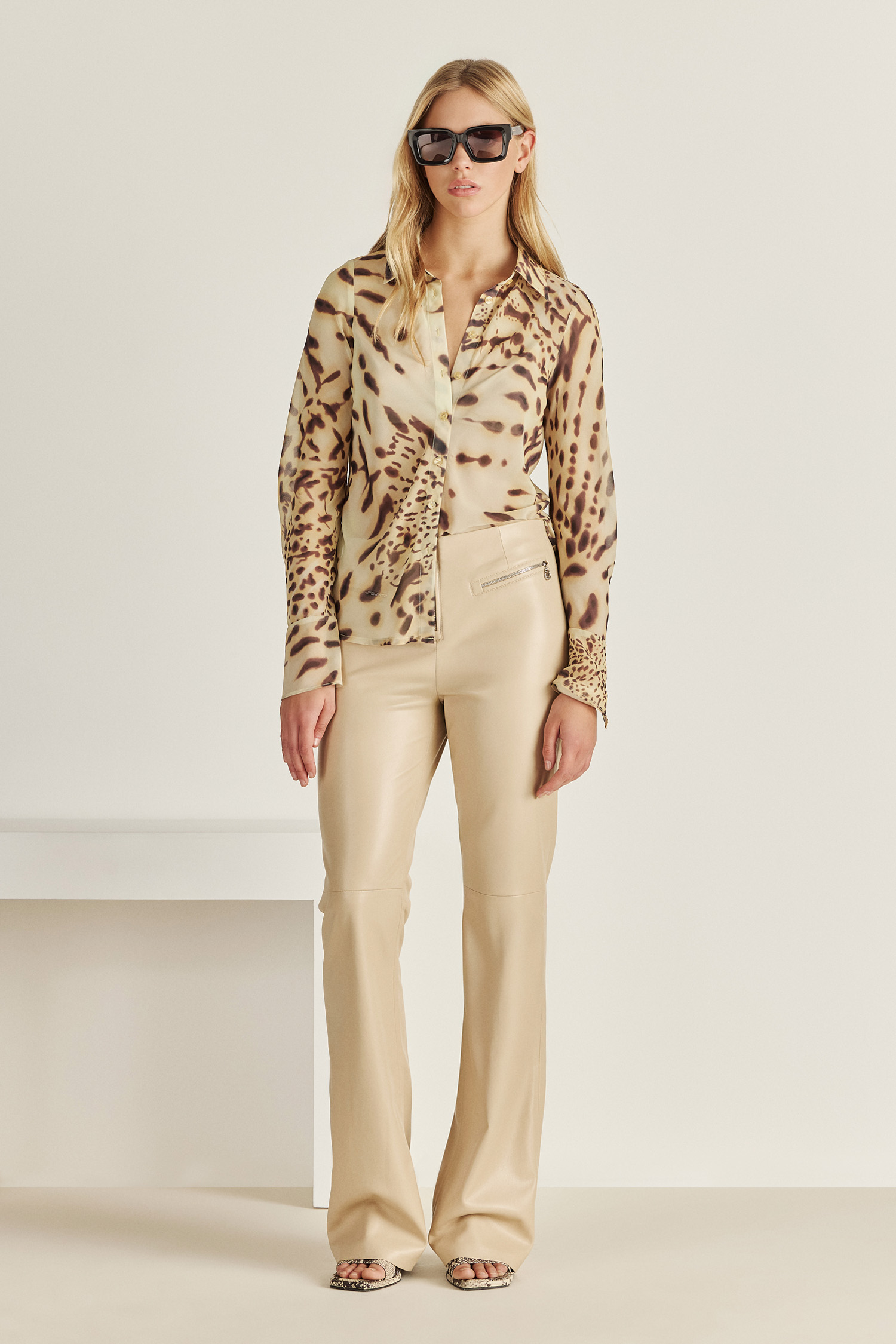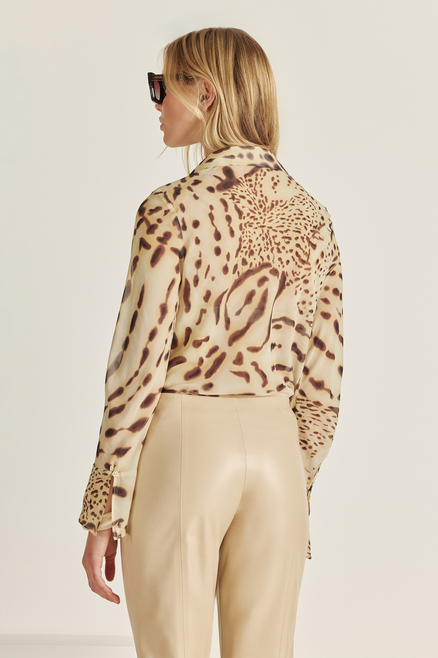 Un infaltable de esta temporada, la camisa es de gasa con transparencia estampada con un diseño exclusivo de la colección. Podés usarla de día o de noche y combinarla con un jean para un look canchero o con la mini Mel para un total look.