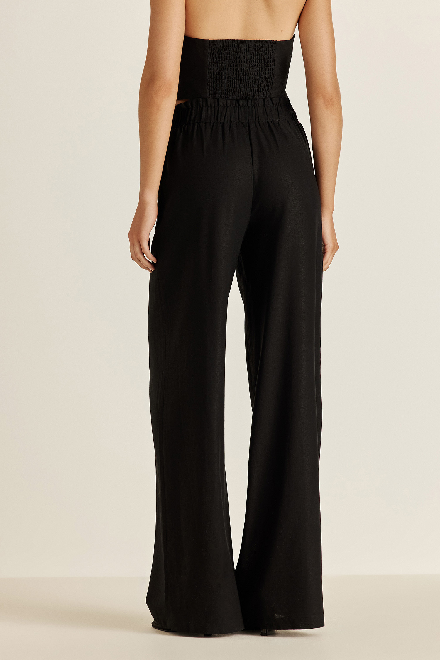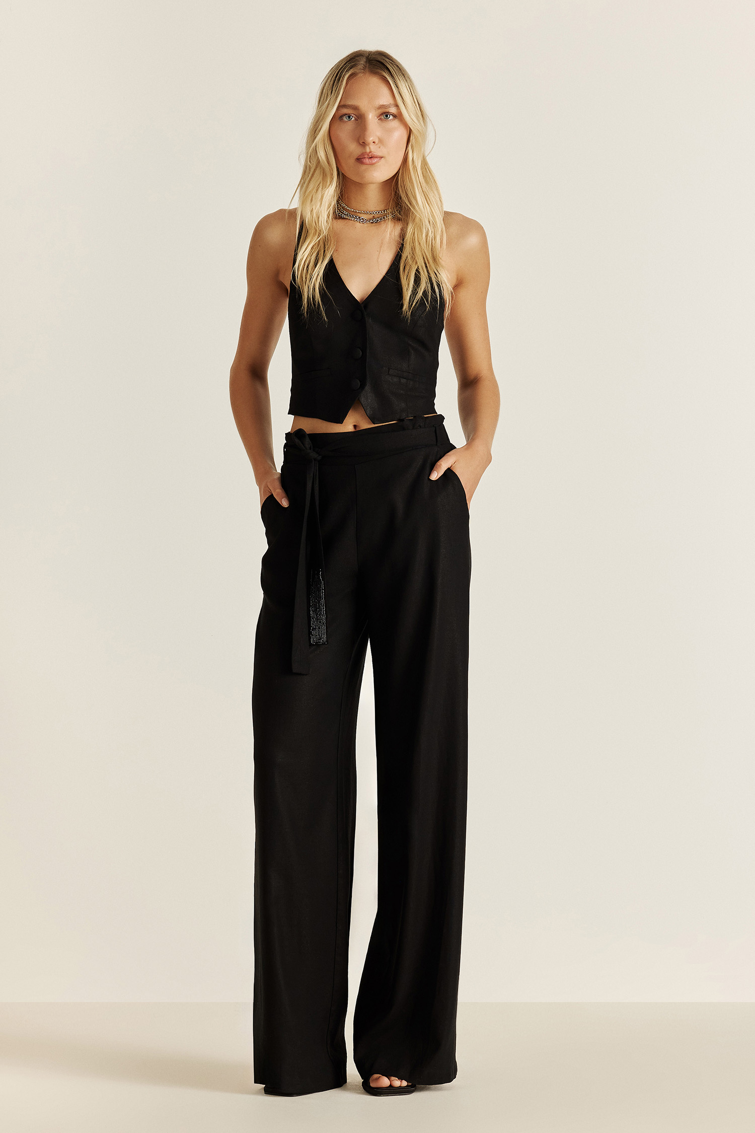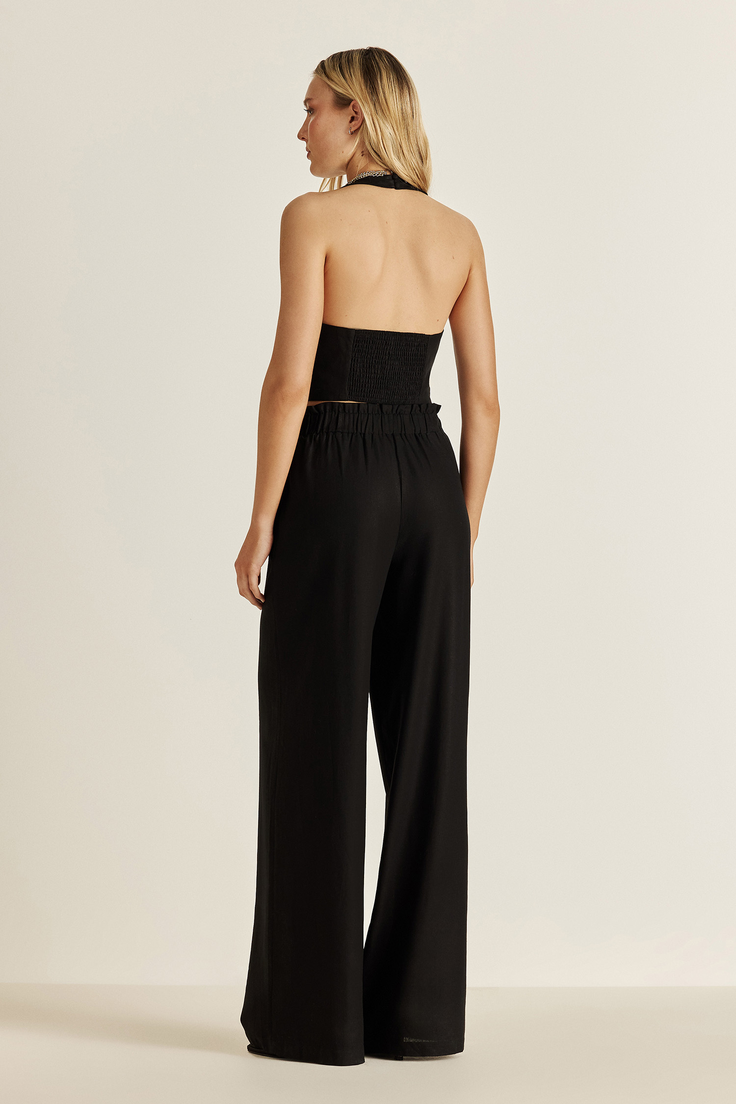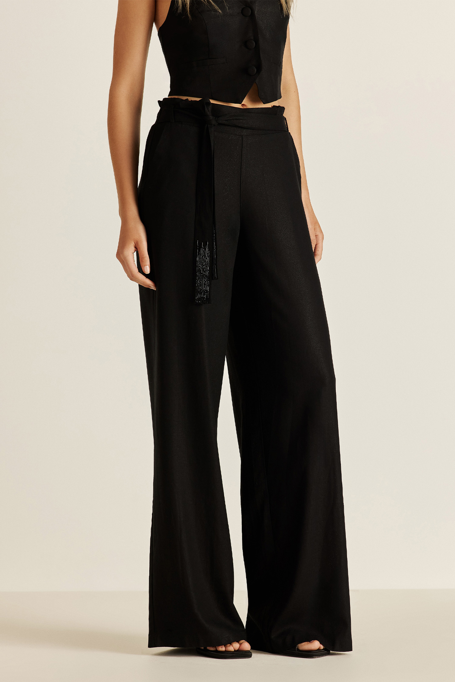 Pantalón confeccionado en lino con acabado foil. Lleva un lazo en la cintura con un bordado exclusivo de la temporada. Es un calce relajado, un fit fresco perfecto para un día de Verano con mucho estilo. Combinalo con el Top Miri o Chaleco Miri para un total look.