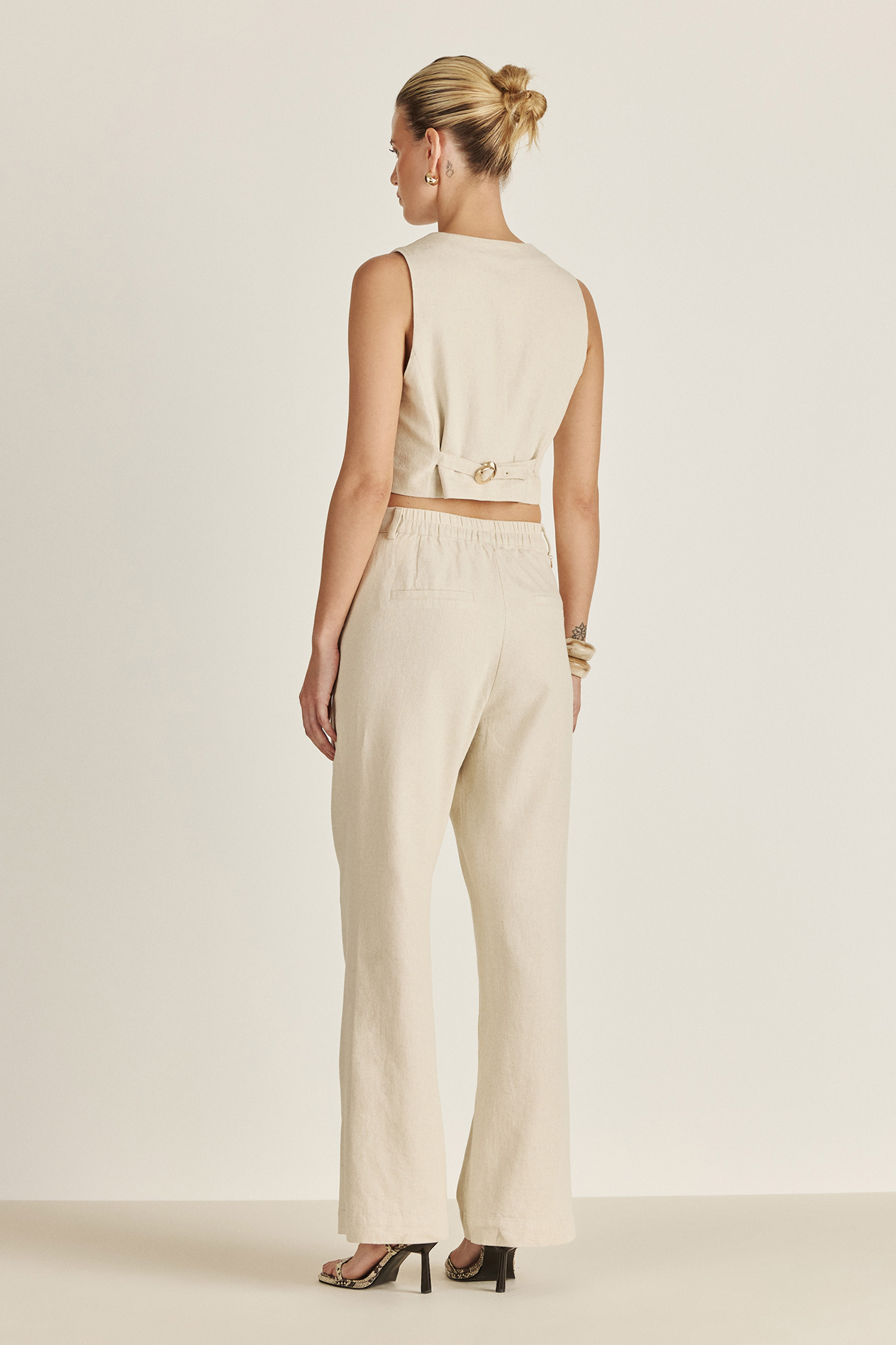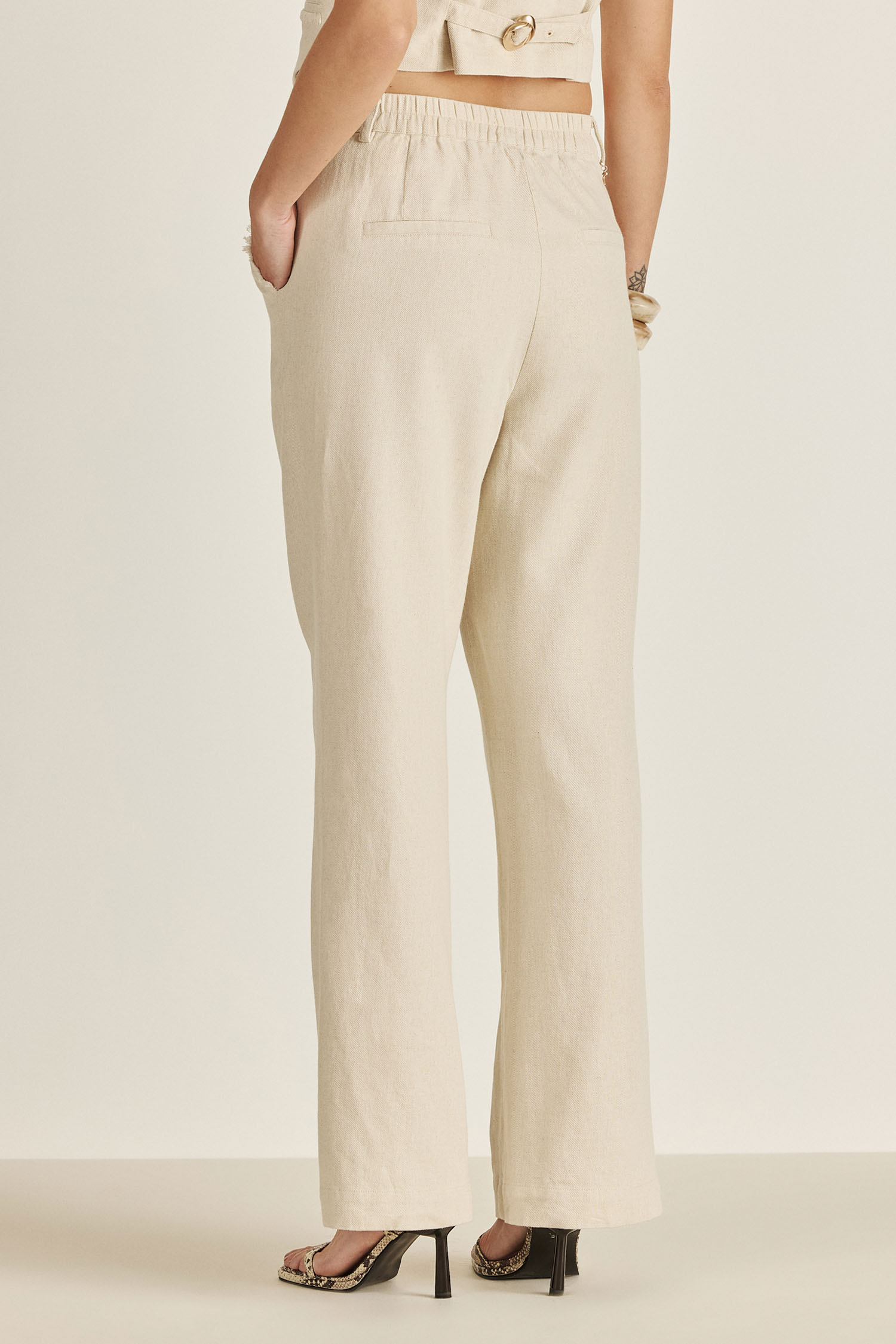 Confeccionado en lino, el pantalón RX Paula ofrece una silueta sastrera relajada y fresca. Incorpora elástico en la espalda para un calce flexible que se adapta al cuerpo, ideal para acompañarte con elegancia todos los días.