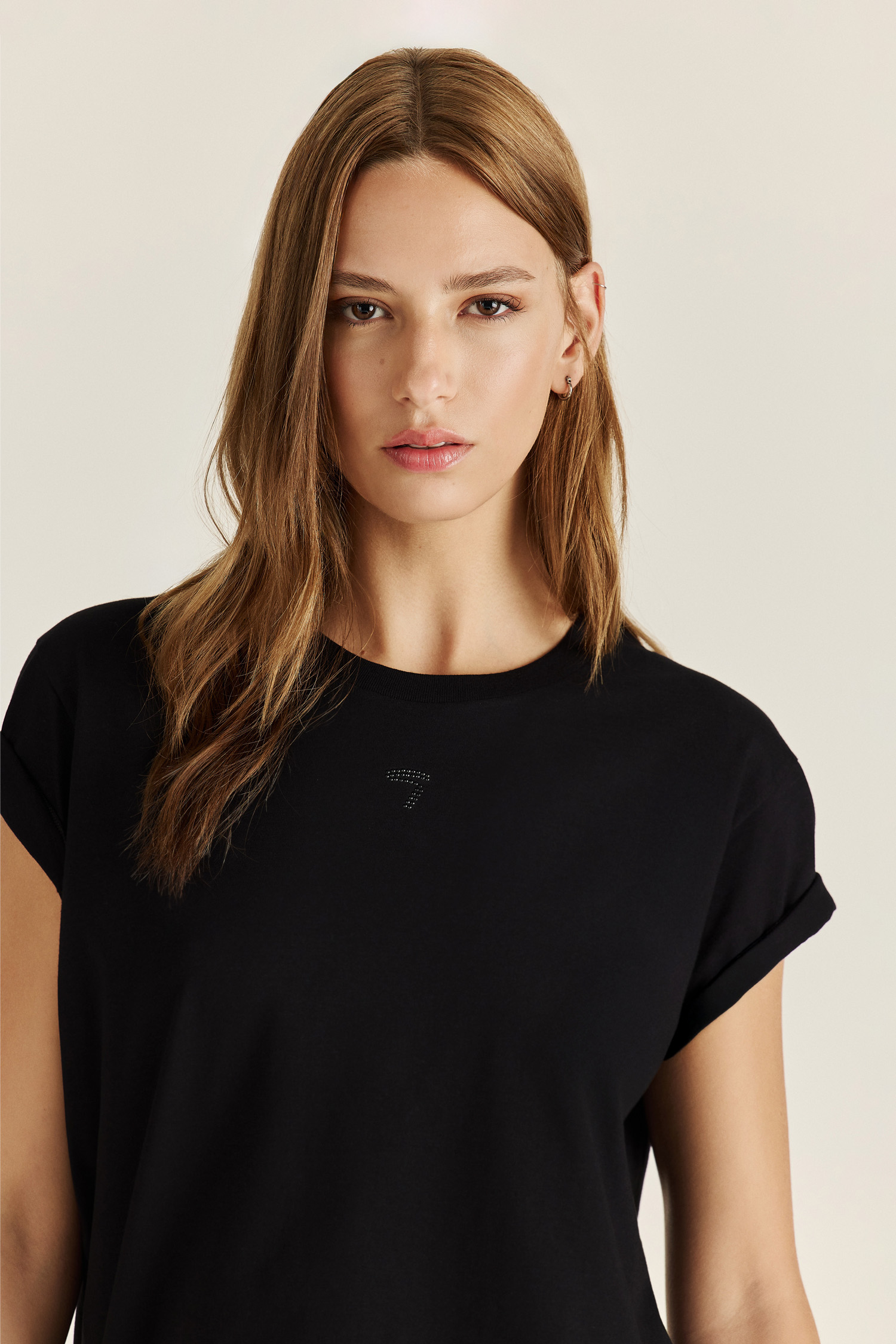 Remera confeccionada en tejido liviano de algodón con estampa en hot fix Tucci en el delantero. El calce es relajado. En el escote trasero lleva un dije con el logo de la marca. Sin dudas el básico reversionado que tu vestidor necesita.