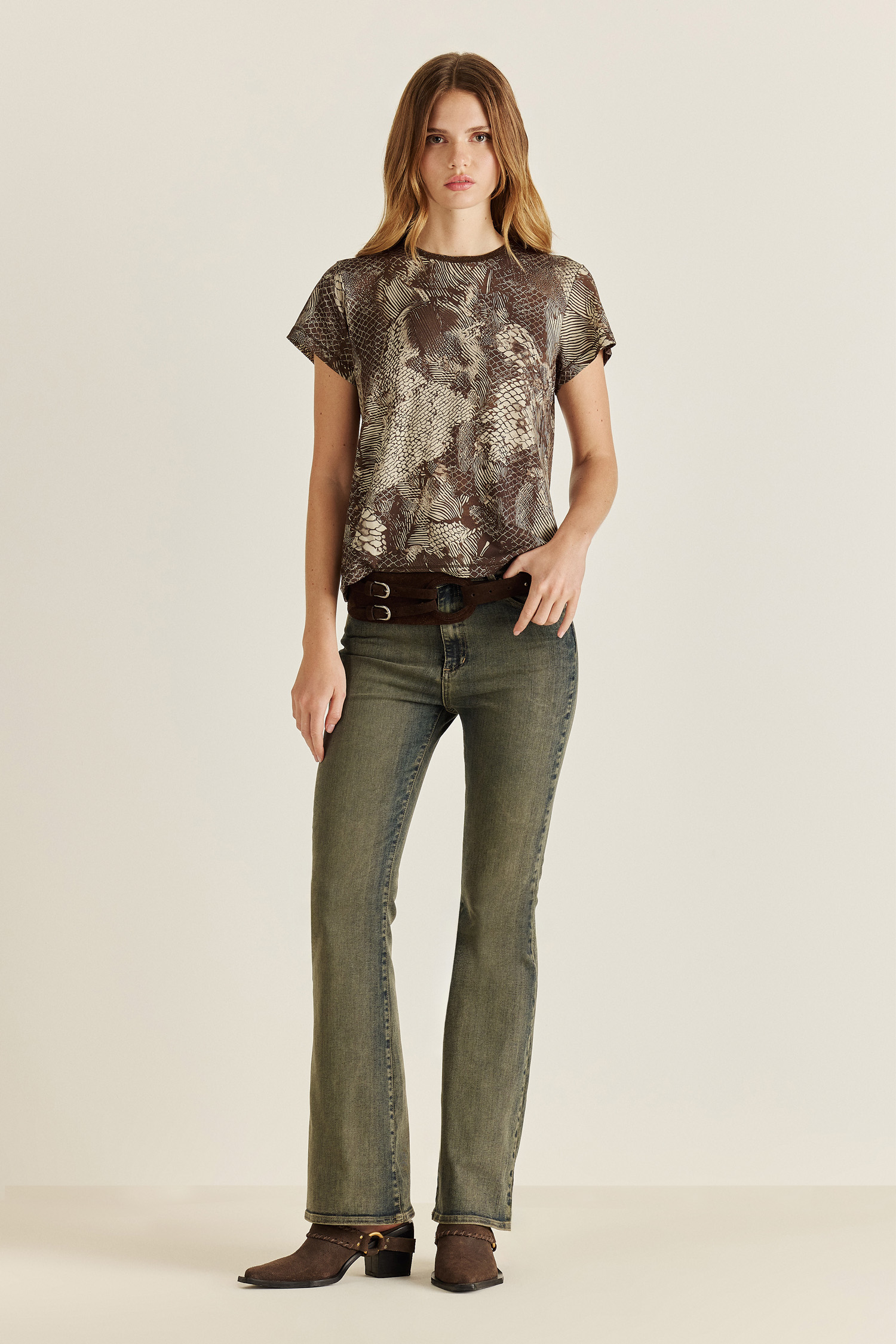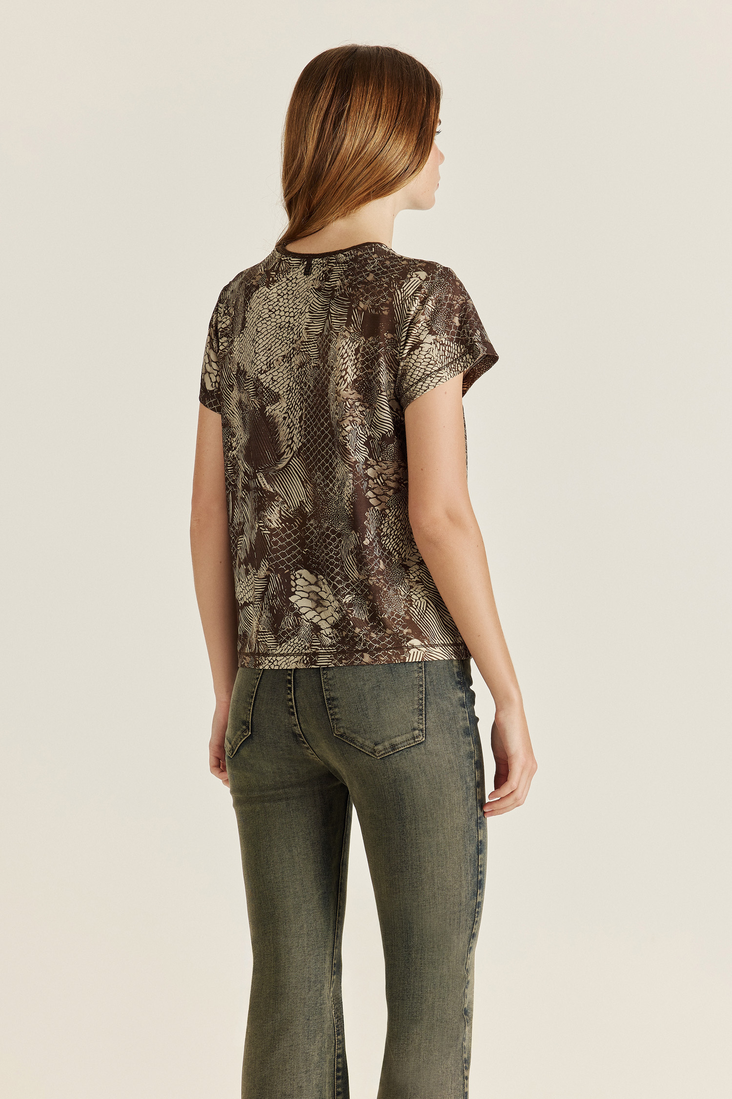 Remera confeccionada en género de punto premium, muy suave y agradable al tacto. Toda la prenda está estampada con un diseño exclusivo de nuestra colección, y el escote presenta un puño tejido con lurex. Lleva una grifa metálica personalizada Tucci en la espalda. Un modelo único y atemporal, combinalo con el pantalon Roxette para el total look.