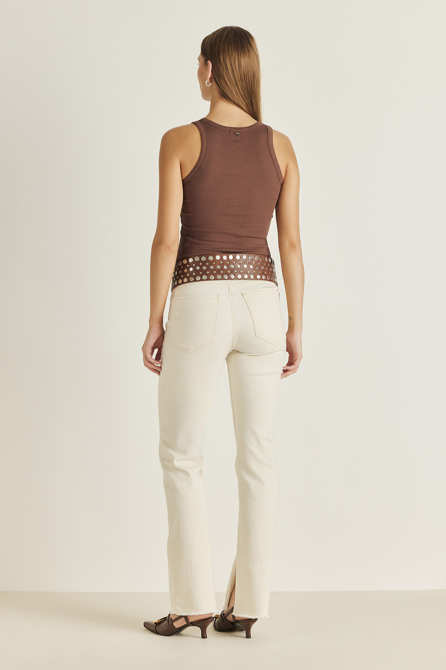 Musculosa de morley 100% algodón con logo "doble t" en piedras hotfix brillantes. Comodidad y estilo en una sola prenda.