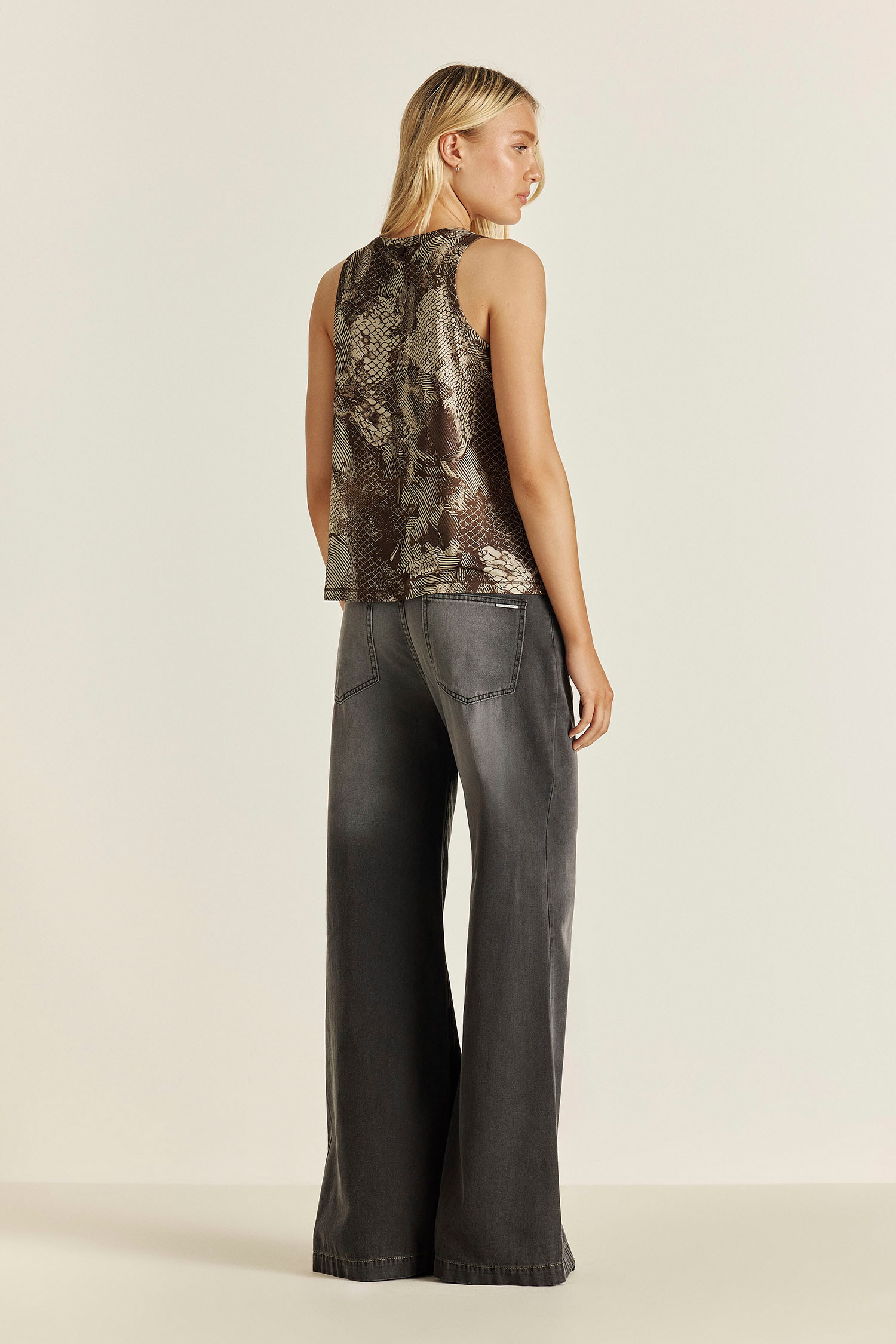 Musculosa confeccionada en género premium, muy suave y agradable al tacto. Toda la prenda está estampada con un diseño exclusivo de nuestra colección, y lleva una grifa metálica personalizada Tucci en la espalda. Un modelo único y atemporal, combinalo con el pantalon Roxette para el total look.