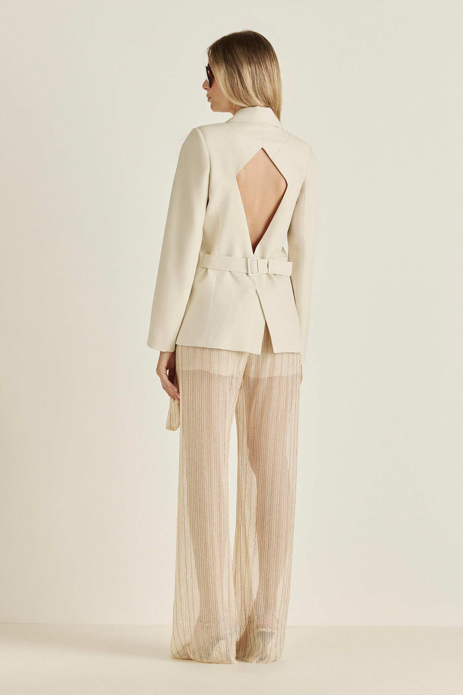 Elegancia y autenticidad definen este saco confeccionado en tejido sastrero con un leve brillo que se destaca con cada movimiento. Diseñado para lucirse junto al short Moon, es la pieza clave que no puede faltar en tus eventos. Su distintivo recorte trasero invita a combinar con encajes o telas al tono y contrastantes. También podés llevarlo solo, para un look sofisticado y versátil. Una joya exclusiva de Tucci Night, en unidades limitadas, pensada para quienes buscan marcar la diferencia.