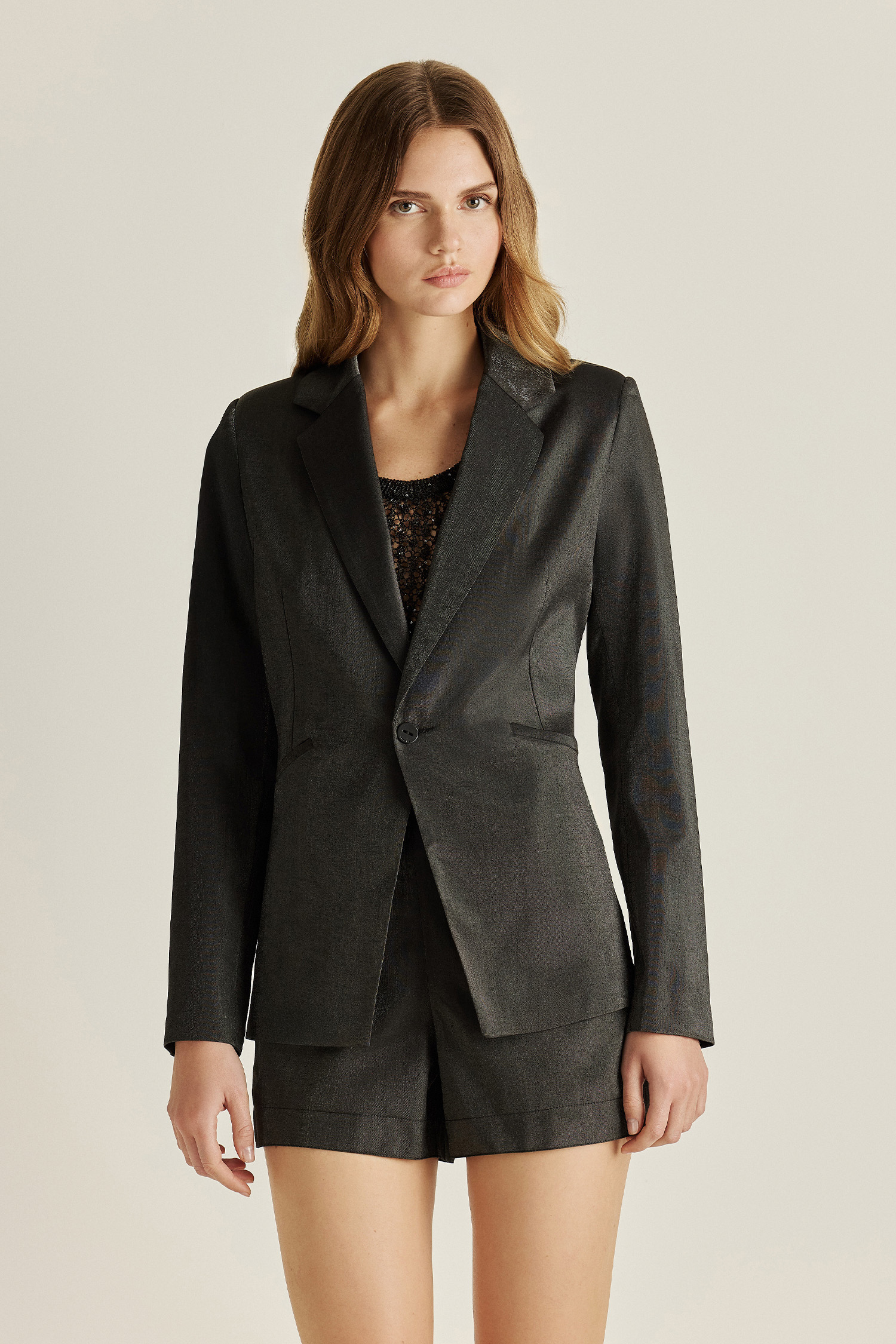 Elegancia y autenticidad definen este saco confeccionado en tejido sastrero con un leve brillo que se destaca con cada movimiento. Diseñado para lucirse junto al short Moon, es la pieza clave que no puede faltar en tus eventos. Su distintivo recorte trasero invita a combinar con encajes o telas al tono y contrastantes. También podés llevarlo solo, para un look sofisticado y versátil. Una joya exclusiva de Tucci Night, en unidades limitadas, pensada para quienes buscan marcar la diferencia.