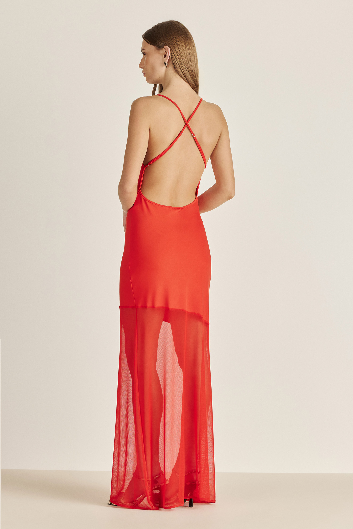 Vestido que combina género de punto con transparencia que deja entrever las piernas, logrando un equilibrio perfecto entre sensualidad y sofisticación. Lleva breteles regulables y detalle de pasador exclusivo con el icónico logo “Doble T” de Tucci. Ideal como comodín infalible para eventos donde quieras sentirte cómoda, pero sin perder ese toque elegante que te define.