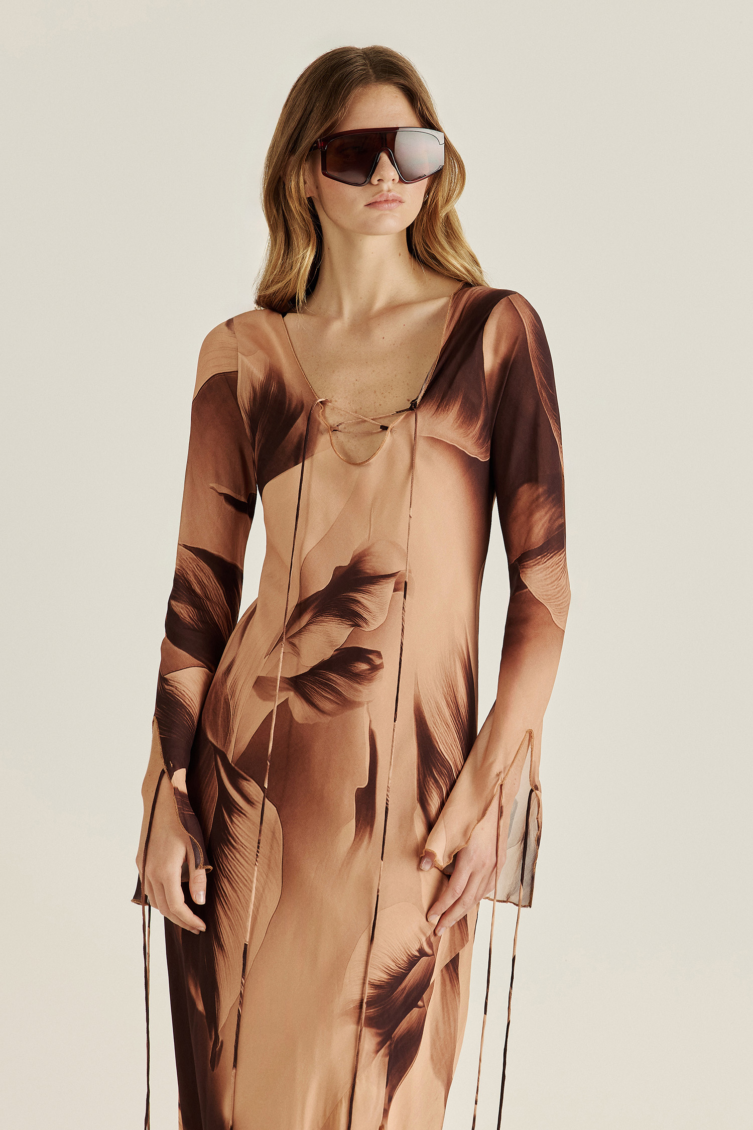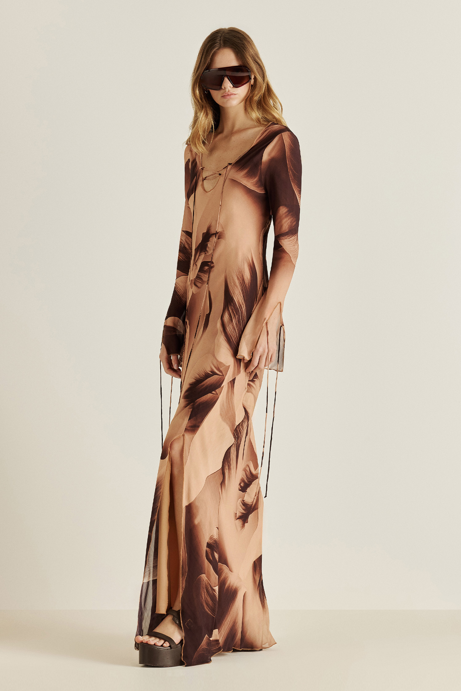 Vestido de gasa estampada con el print estrella de la temporada. Está cortado al bies, lo que permite que se adapte suavemente al cuerpo, destacando la silueta con una caída fluida y natural. Ideal para destacar en cualquier ocasión con elegancia y frescura.