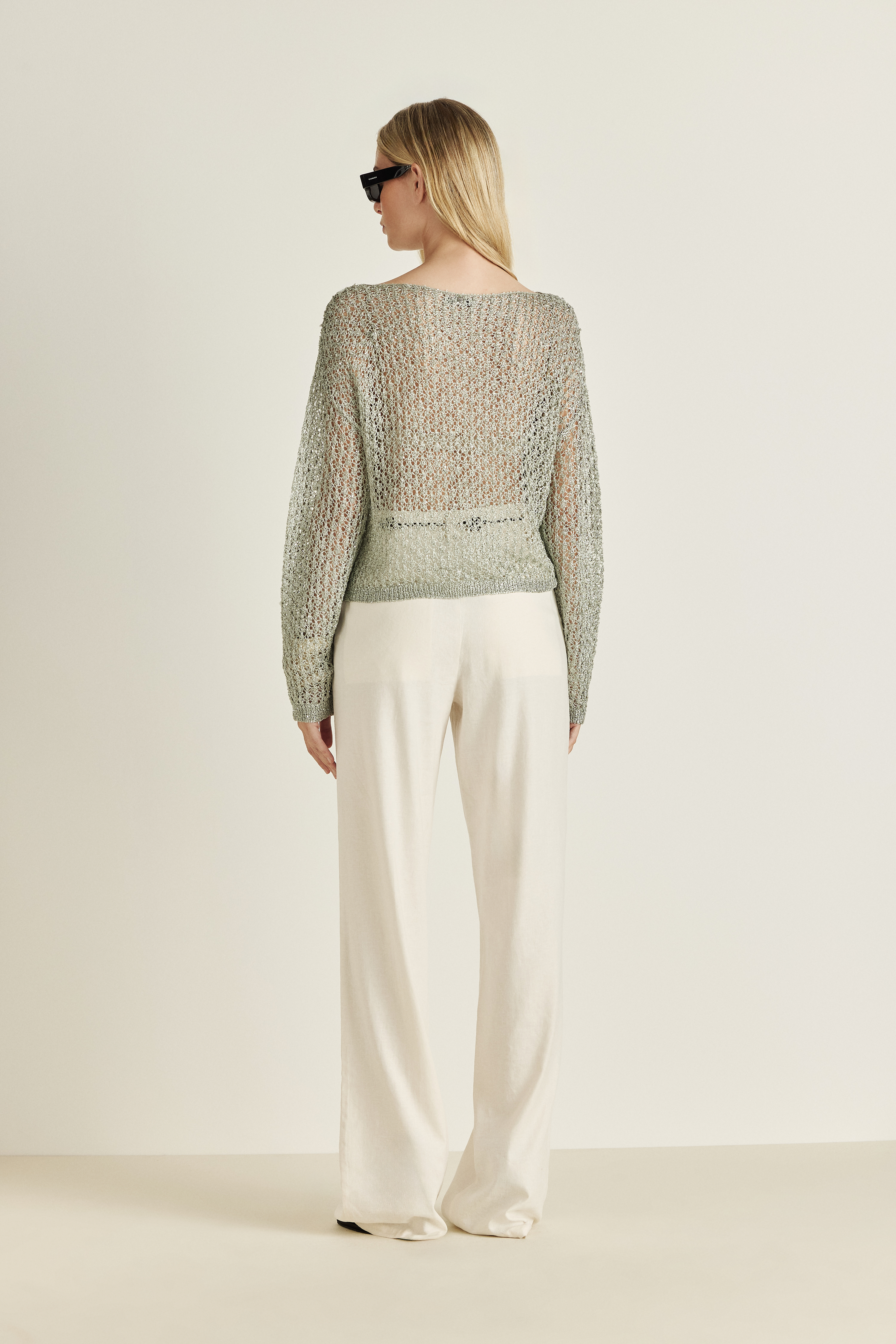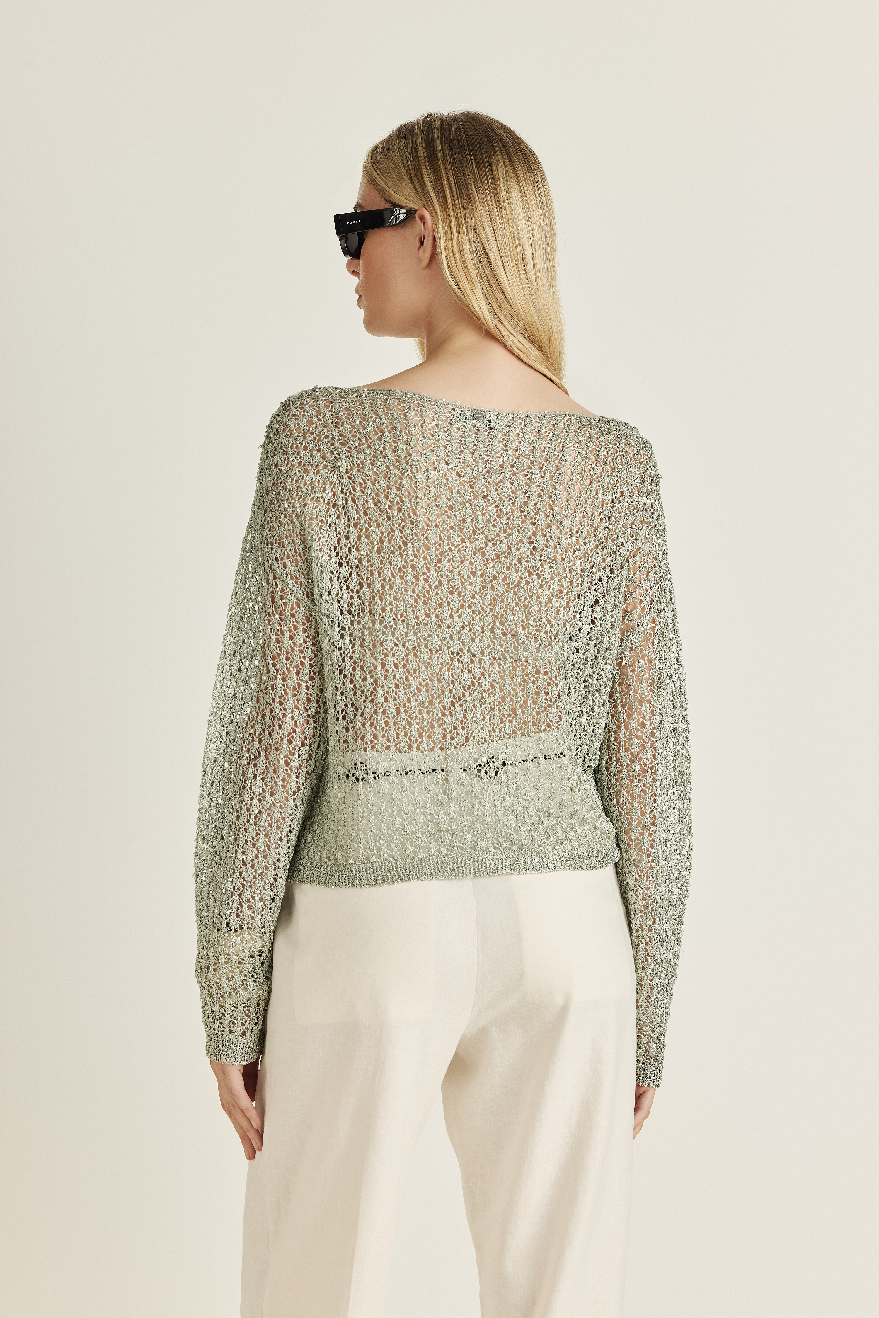 De tejido con lentejuelas, el Sweater Midnight se destaca por su sensualidad, ya que genera transparencias, ideal para quienes desean llevar un look que hable por sí solo.