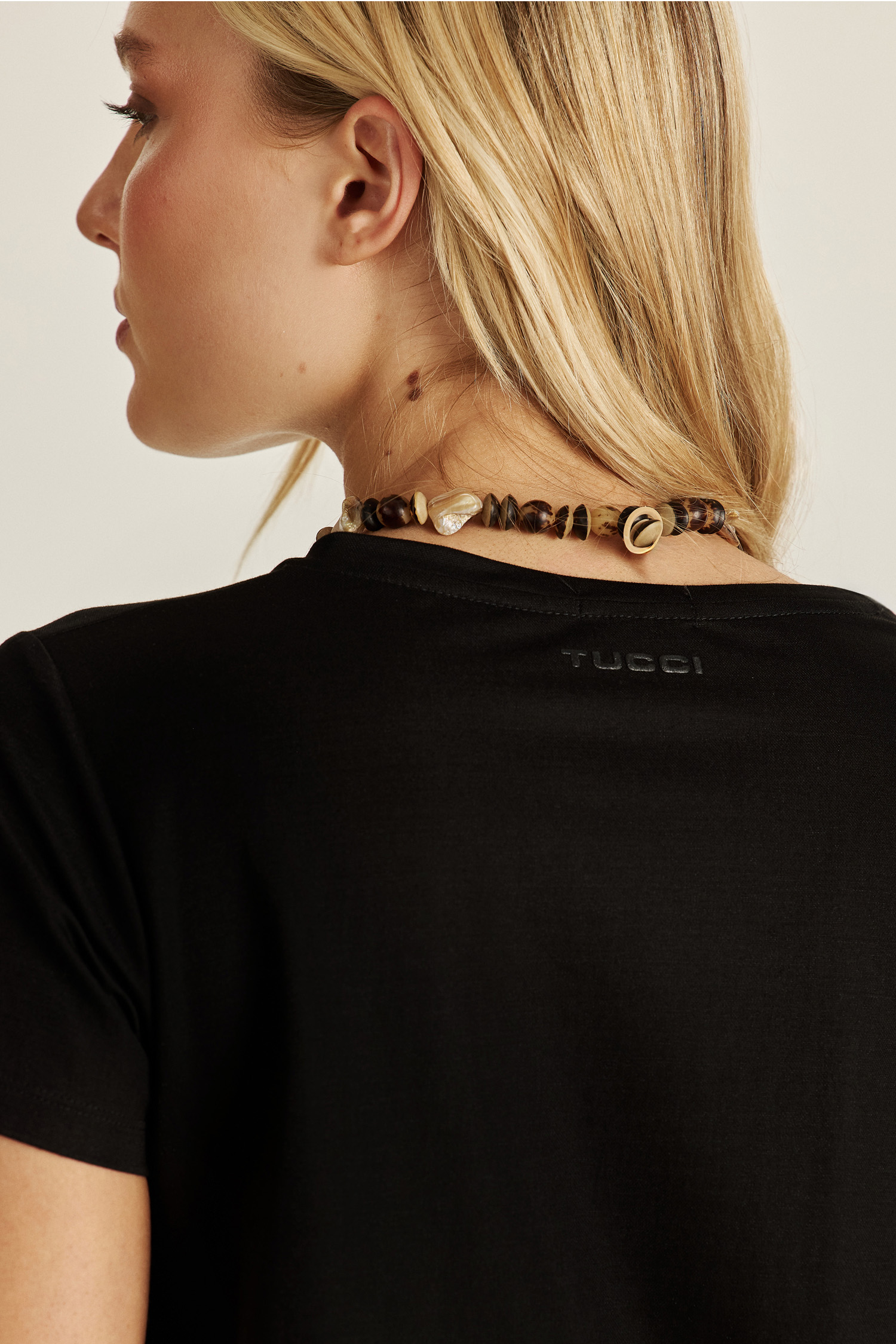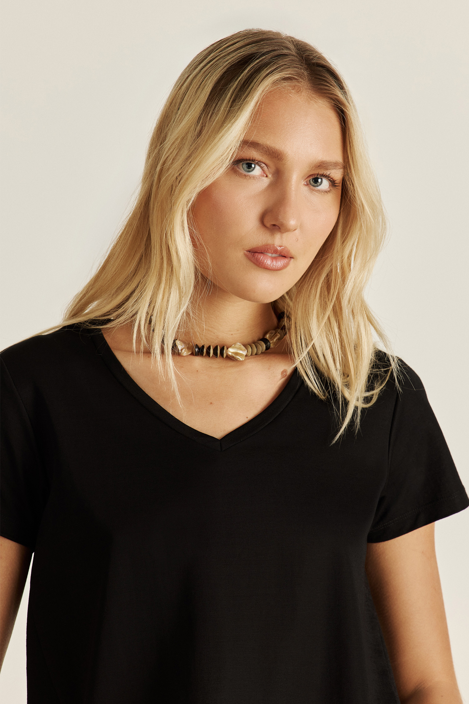 Remera confeccionada en género texturado de calce regular y diseño irregular en ruedo.